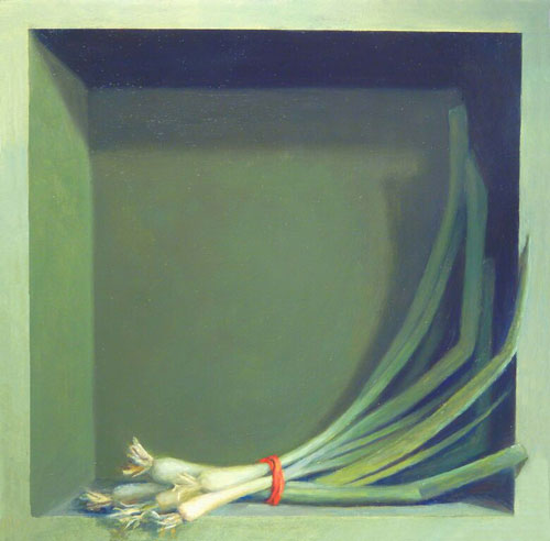 Jean Wetta’s intimate but mystical ‘Boxes’ (oil on panel) are primarily inspired her close relationship with her grandmother. Regarding this experience Wetta says: “Our shared life, with no clear distinction between reality and fantasy, the ordinary and the extraordinary, the natural and the supernatural, cultivated creativity and provided an atmosphere where anything (including making art) was possible”. Wetta’s fascination for the 19th century trompe l’oeil still life painter John F. Peto is especially visible in her work.